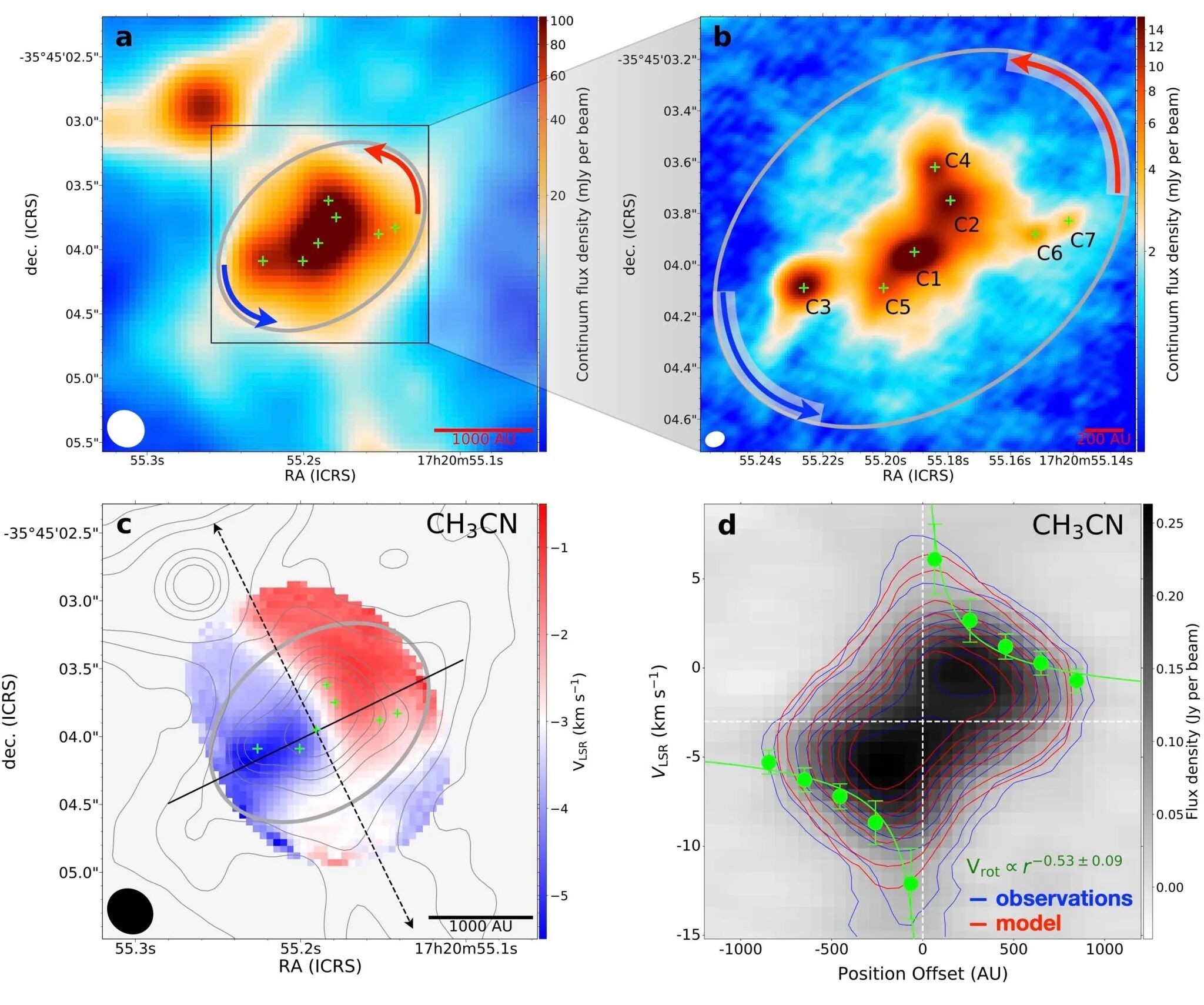 正在孕育的恒星“七胞胎”被发现时间:2025-10-14 茫茫宇宙中,多星系统是如何形成的,一直成谜。10月13日,记者从南京大学获悉,该校领衔的国际研究团队,发现了一个正处于形成阶段的七颗原恒星系统(以下简称“七星系统”)。团队通过动力学分析与数值模拟,研究揭示了该七星系统是由原恒星盘碎裂形成。研究成果近日刊发于国际学术期刊《自然·天文学》。 在璀璨的星河里,悬挂夜空的星星们并不孤单。科学家们在此前的天文观测中发现,银河系内超过半数的恒星都以双星或者更高阶的多星系统存在。这些多星系统不仅调控着恒星团的动力学演化,更深刻影响着恒星的生死历程。然而,这些多星系统的起源,至今仍是谜题。 论文第一作者兼通讯作者、南大副教授李尚活介绍,目前学界普遍认为多星系统主要通过致密云核碎裂和吸积盘碎裂产生。但由于缺乏直接观测证据,吸积盘碎裂是否真能产生此类更高阶的系统,始终是一个悬而未决的关键科学问题。 此次研究中,团队利用阿塔卡马大型毫米波/亚毫米波阵列(ALMA)望远镜,对距离地球大约4240光年的一个典型大质量恒星形成区NGC6334IN进行了高空间分辨率观测。 “我们通过分析ALMA的观测数据,发现在NGC6334IN核心区中存在七颗原恒星‘种子’,它们正在一个符合开普勒转动规律的盘结构中形成。这是天文学家首次在一个原恒星团中探测到如此高阶的多星系统。结合动力学分析与数值模拟,我们揭示了该七星系统起源于吸积盘碎裂。”李尚活说。 论文作者、南大教授邱科平表示:“此次观测为理解高阶多星系统的形成提供了直接观测证据。未来,我们计划通过包括ROMA在内的多个项目,开展系统性的高空间分辨率搜寻,并结合数值模拟,揭示出双星和多星形成更普遍的规律。” |