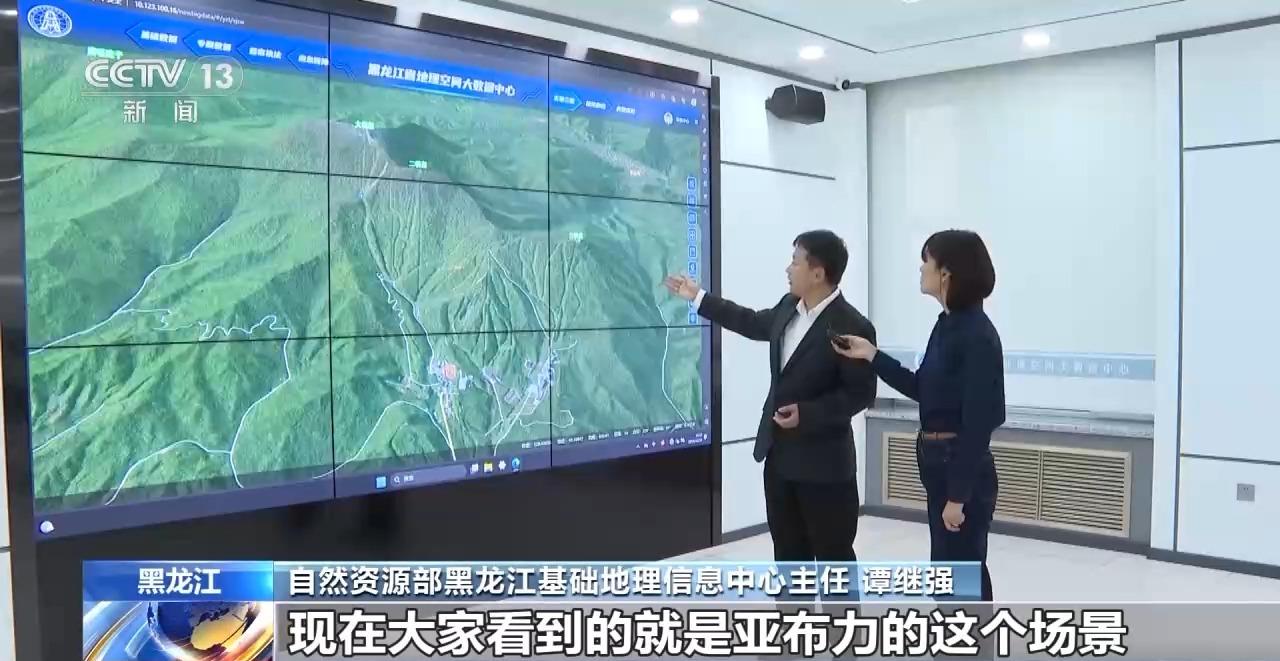 自然资源部黑龙江基础地理信息中心主任 谭继强:大屏幕上展示的就是我们利用资源系列的卫星传回的数据,现在就是亚布力的场景,可以看到山势的起伏以及雪场,还有村庄、河流,这些情况一目了然。这些卫星就像太空中的千里眼,可以发现大地上的每一处细节变化,我们把这些数据上传到专业平台,可以为各行各业提供科学决策作为相应的支撑。