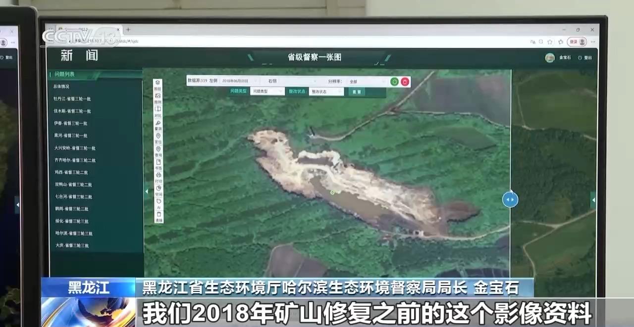 黑龙江省生态环境厅哈尔滨生态环境督察局局长 金宝石:这个图片就是我们2018年矿山修复之前的影像资料,绿化率是比较低的。