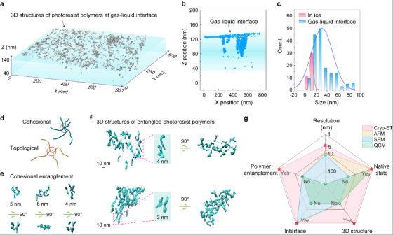 光刻技术是推动集成电路芯片制程工艺持续微缩的核心驱动力之一。近日,北京大学化学与分子工程学院彭海琳教授团队及合作者通过冷冻电子断层扫描(cryo-electron tomography,cryo-ET)技术,首次在原位状态下解析了光刻胶分子在液相环境中的微观三维结构、界面分布与缠结行为,指导开发出可显著减少光刻缺陷的产业化方案。相关论文近日刊发于《自然-通讯》。“显影”是光刻的核心步骤之一,通过显影液溶解光刻胶的曝光区域,将电路图案精确转移到硅片上。光刻胶如同刻画电路的颜料,它在显影液中的运动,直接决定电路画得准不准、好不好,