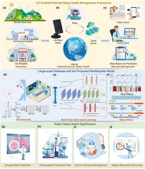 睡眠障碍正困扰全球数十亿人,而传统睡眠监测设备复杂昂贵、需接触人体,导致精准睡眠医疗服务难以普惠。近日,我国科研团队成功攻克无感睡眠监测世界难题,研发出基于毫米波雷达与大规模深度学习的非接触、高精度睡眠监测系统,相关论文在国际顶级期刊《自然·通讯》发表。现有监测“金标准”多导睡眠监测(PSG)需在患者身体粘贴多个电极,程序烦琐,体验差;居家睡眠监测设备虽简化,但仍需佩戴传感器,舒适性和依从性低,难以大范围推广。针对这一难题,南京理工大学洪弘教授团队联合多家临床医院及科研单位,创新性地提出“呼吸信号即