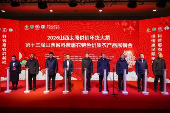 为深入贯彻落实党中央、国务院和省委、省政府关于全面推进乡村振兴的部署要求,践行大农业观与大食物观,做好“土特产”大文章,1月28日,以“ 供销惠民强根基 科普惠农启新程 ”为主题的2026山西太原供销年货大集第十三届山西省科普惠农特色优质农产品展销会在山西省展览馆启幕。山西省供销社党组书记、理事会主任高建军,山西省科协党组书记、副主席李贵增,山西省科协党组成员、副主席李建文出席开幕式。太原市供销社党组成员、监事会主任阎继华主持开幕式。▲与会领导共同启动展销会会上,李贵增宣布2026山西太原供销年货大集第十三届